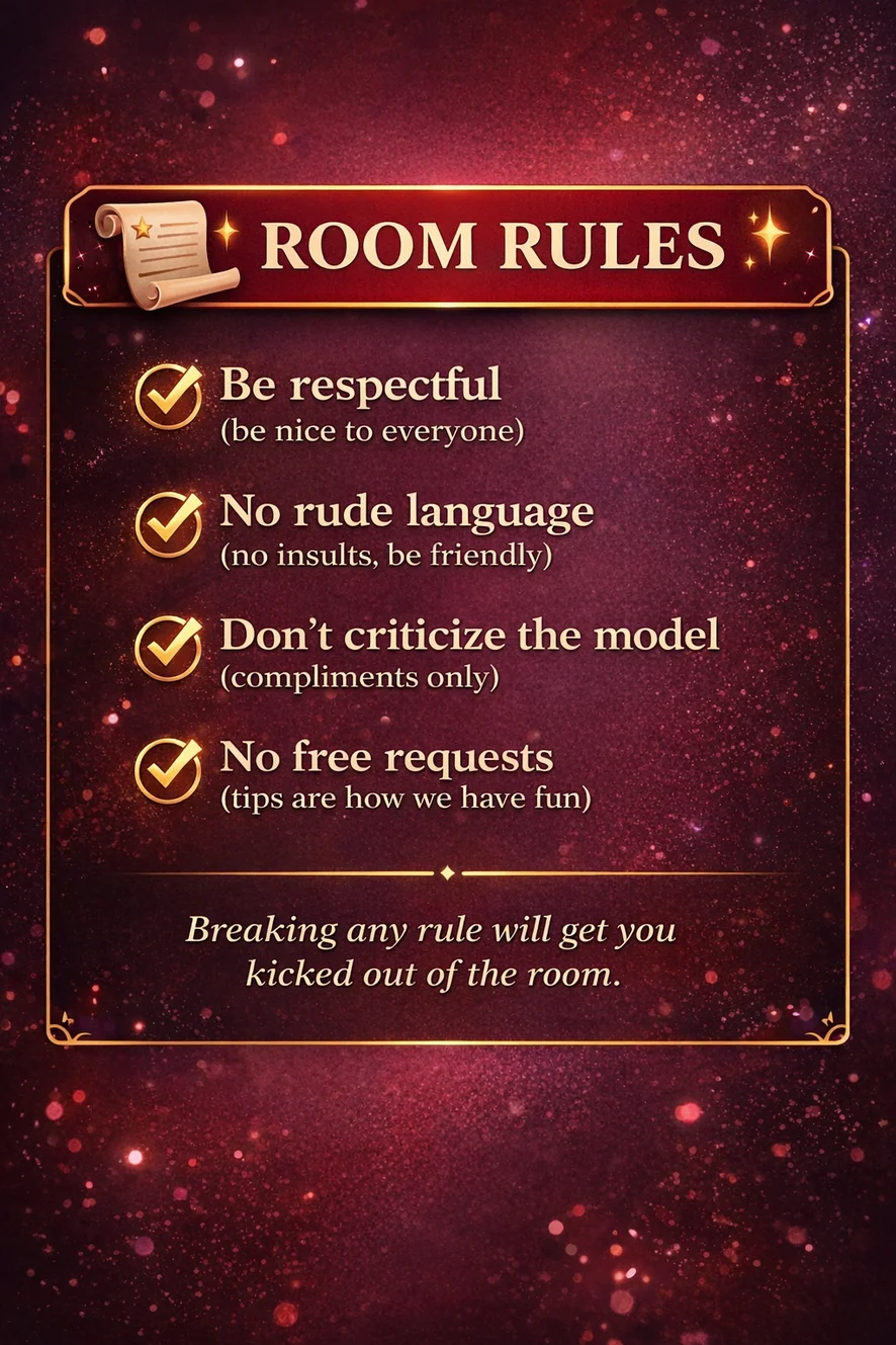 We believe the best shows are built with chemistry, eye contact, slow teasing and real energy. We love talking, laughing, and creating a vibe where you feel seen — not rushed.